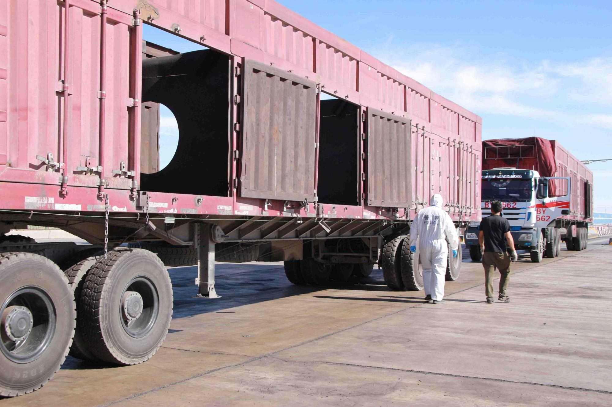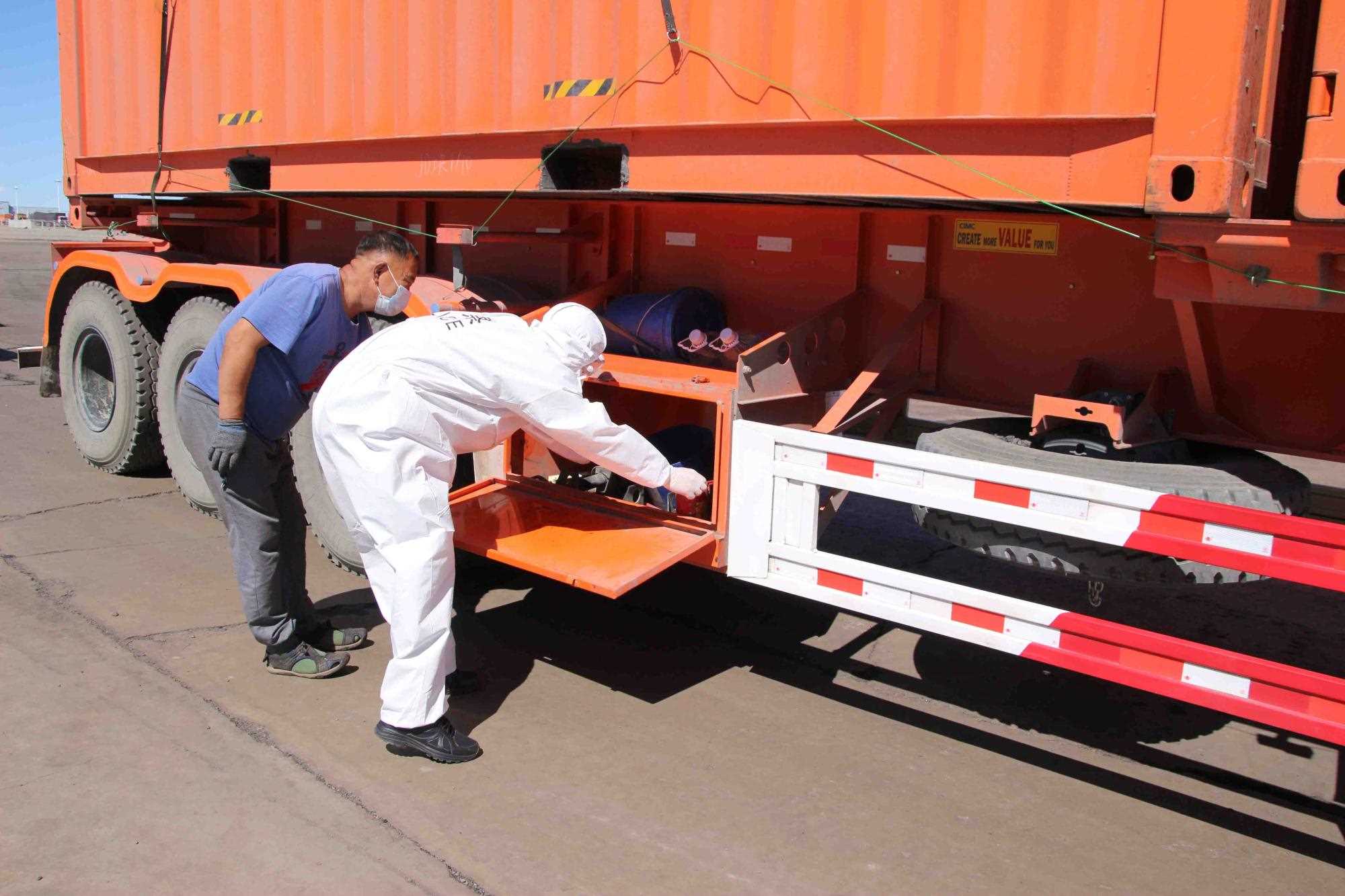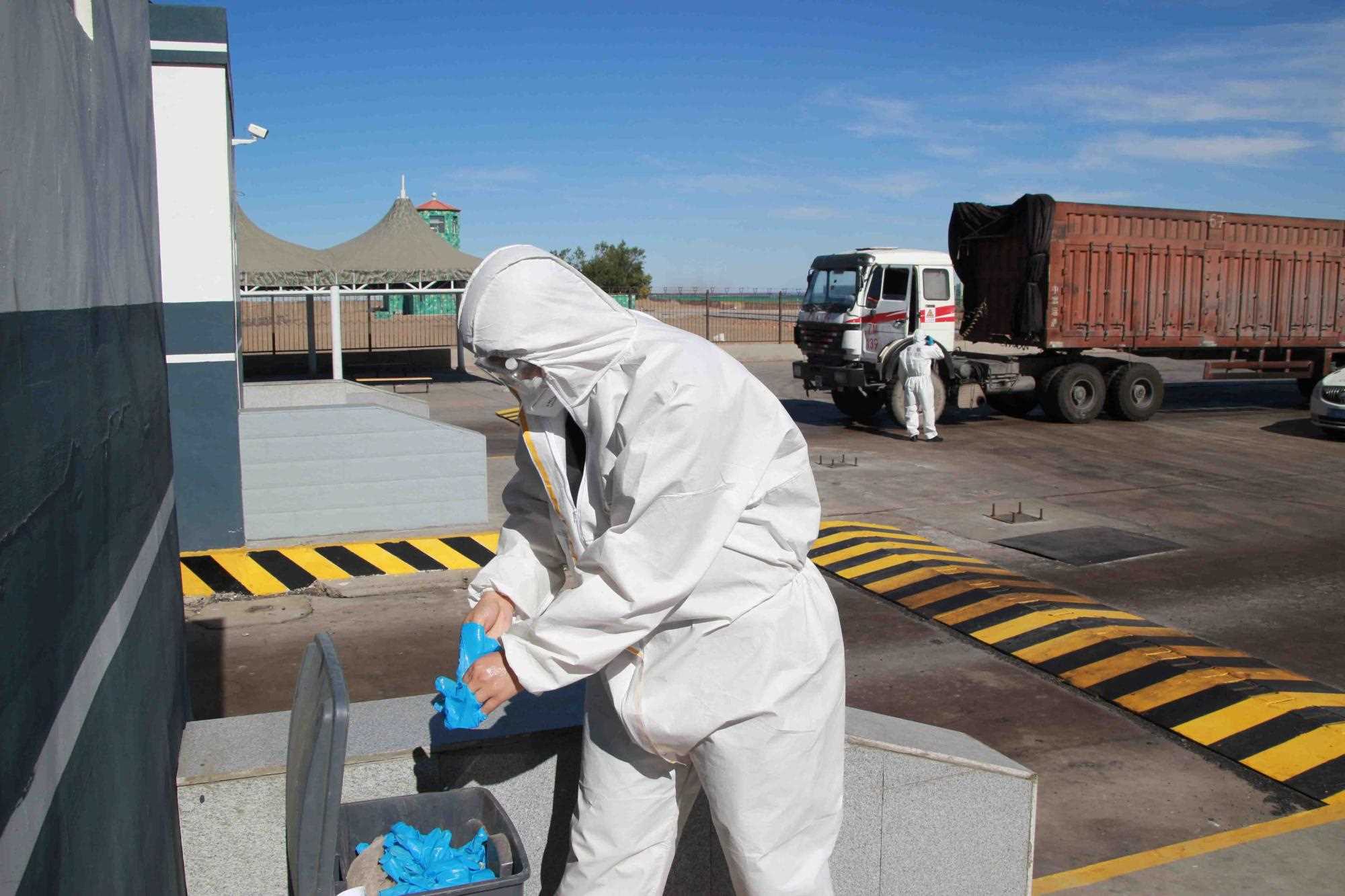 近期策克口岸的溫度持續(xù)增加至30攝氏度以上,而在通行的重型卡車,溫度還要更高,下午15點溫度計地表溫度測量最高可達40攝氏度。這無疑讓的查驗工作更為繁重。更重要的是,由于疫情影響每名民警在查驗期間都要穿上防護服,在高溫下,由于防護服是密閉的,防護服里仿佛成了蒸箱,用不了十分鐘,民警就會汗流浹背,防護服黏在身上又粘又癢,一班勤務(wù)近2個小時,必須要等過了勤務(wù)才能休息,而民警還要完成車體的查驗工作,包括工具箱、馬槽等處,絲毫不敢馬虎。