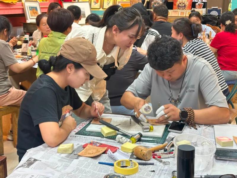 連日來(lái),皮雕技藝培訓(xùn)班也在如火如荼開展。自治區(qū)級(jí)非遺項(xiàng)目皮雕技藝傳承人溫都爾木現(xiàn)場(chǎng)指導(dǎo)學(xué)員制作傳統(tǒng)皮雕,并將皮雕技藝創(chuàng)新應(yīng)用于錢包、腰帶等日常用品。“此次培訓(xùn)吸引了30多名農(nóng)牧民參與,我們不僅傳授傳統(tǒng)皮雕工藝,還教授阿拉善寶石鑲嵌技法,助力農(nóng)牧民掌握增收新技能,實(shí)現(xiàn)技藝傳承與增收致富雙贏。”溫都爾木告訴記者?! ?/p>