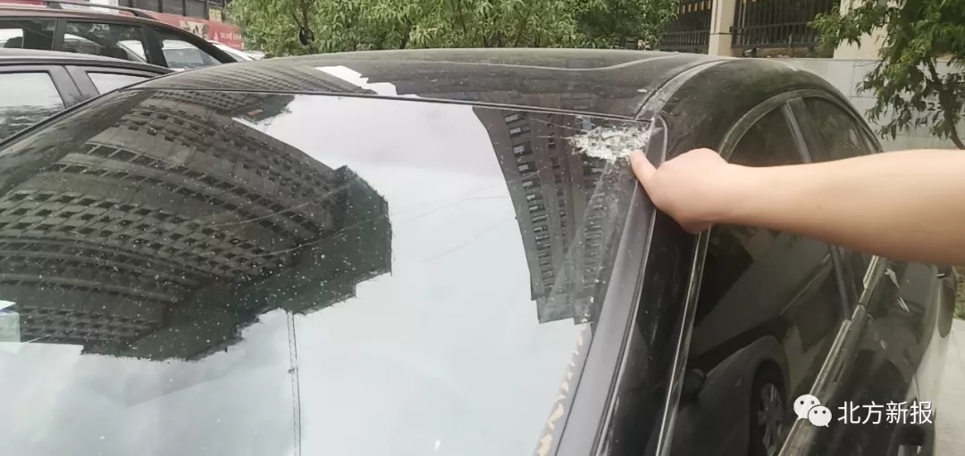 據(jù)車主段先生講,他的長安福特汽車前風(fēng)擋玻璃上有一處直徑10厘米左右的放射性裂痕,車身也是傷痕累累。被砸傷的不僅是車輛,當(dāng)時(shí)有一位路人也被高空墜物砸中腿部,好在傷的不厲害,只是破了皮。