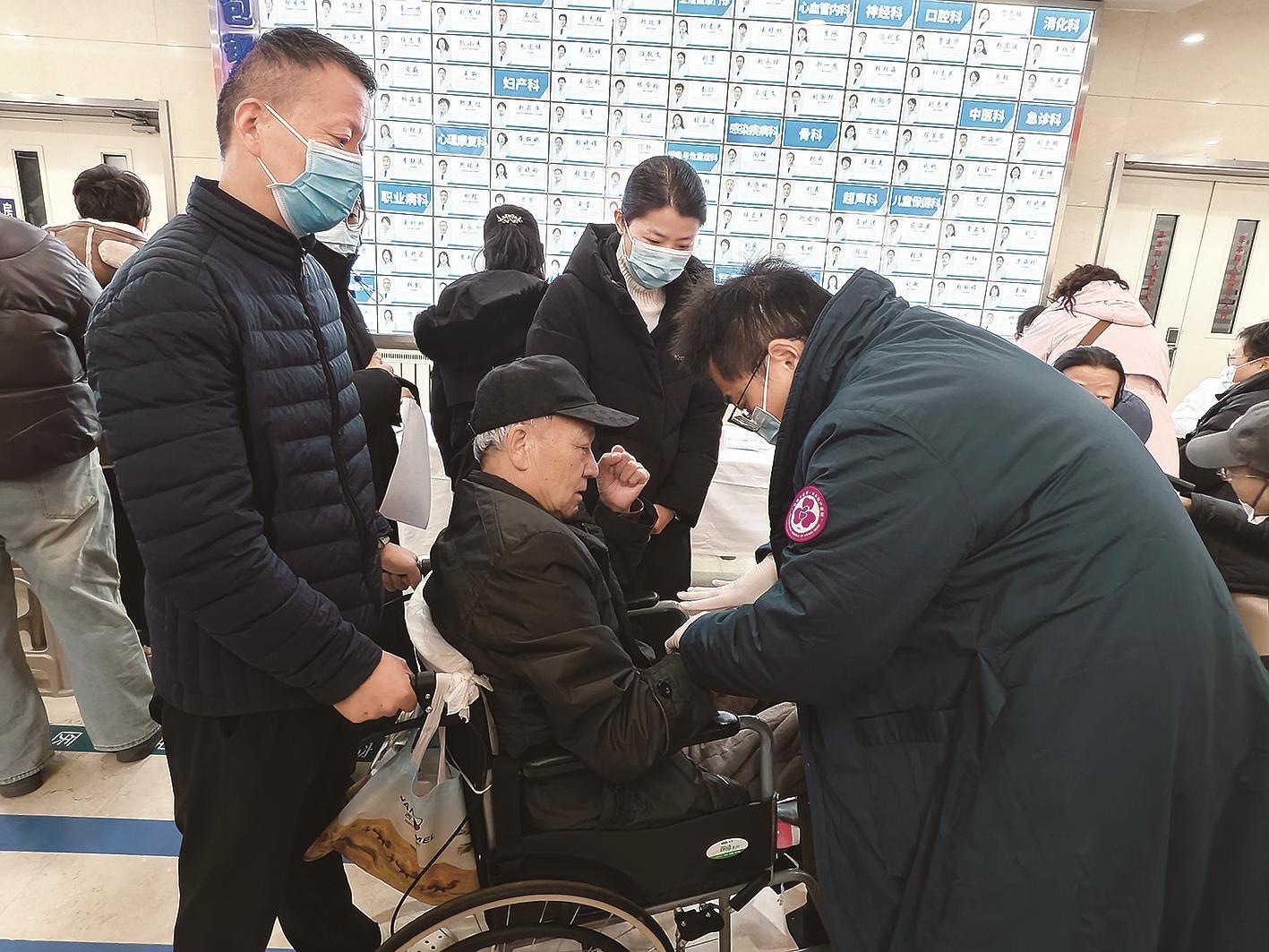 當(dāng)日上午9時(shí)許,包鋼三醫(yī)院門診大廳已經(jīng)是人頭攢動。大廳里的“包頭市‘防殘減殘助殘暖冬行動’篩查服務(wù)”指示牌格外醒目,抽血、CT、眼科、口腔等專設(shè)服務(wù)窗口前有許多殘疾人朋友在排隊(duì)等候,醫(yī)護(hù)人員引導(dǎo)殘疾人朋友接受檢查,來自北京的專家正在為一位坐在輪椅上的肢殘人士進(jìn)行下肢功能檢查,手法專業(yè)而細(xì)致。