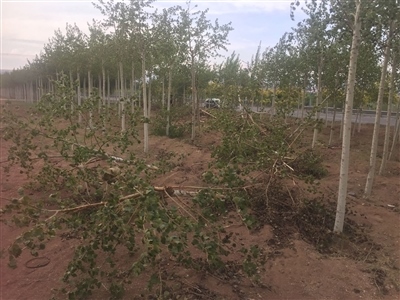 民警趕到現(xiàn)場(chǎng)檢查發(fā)現(xiàn),32棵6年生的河北楊及1棵金葉榆被撞倒,肇事車(chē)輛不知所蹤,現(xiàn)場(chǎng)只留下車(chē)輛紅色前保險(xiǎn)杠殘片和15米長(zhǎng)的車(chē)輛輪胎痕跡。