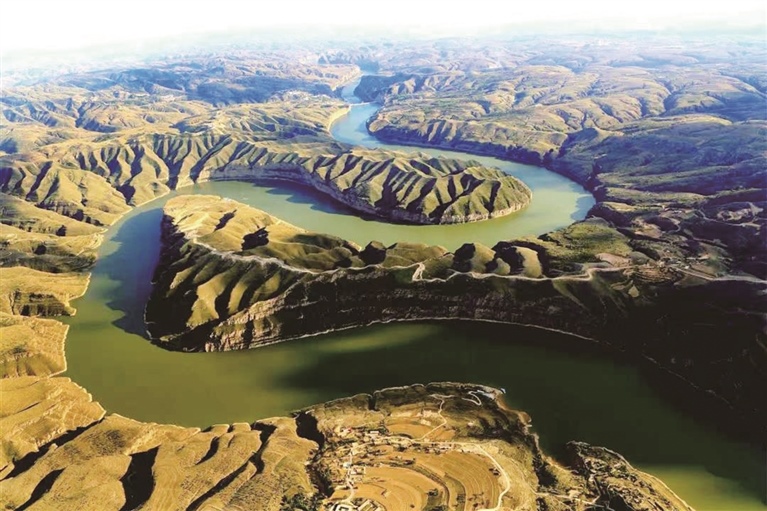 一瀉千里奔騰向前的黃河,在即將告別鄂爾多斯高原之際忽然變得戀戀不舍,繞著準(zhǔn)格爾大峽谷迂回徘徊,留下了兩個(gè)接近360度的大轉(zhuǎn)彎。青山不墨,綠水無(wú)語(yǔ),卻肩并肩勾勒出流傳千秋的畫(huà)卷——“太極灣”。