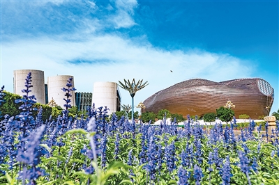 康巴什的綠色是生態(tài)杰作,更是藝術(shù)的篇章。城區(qū)郊外花草樹木顏色的搭配及變化,似被打翻的調(diào)色盤,也似一幅幅印象派畫作。無論是在中軸線上,還是在伊克敖包周邊或?yàn)跆m木倫街沿線等,康巴什都是花草的海洋。三四月,雪白的杏花之后是粉紅的桃花;五六月的郁金香、牡丹、芍藥,姹紫嫣紅;七八月的薰衣草如紫色的水晶……