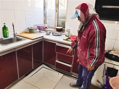 10月28日上午,記者再次來到阿木奈營村回訪,馬美蘭家和趙秀平家的暖氣片均已安裝,供熱良好。仍然有部分村民家的暖氣不熱,部分村民屋后的架空暖氣管道接口處漏水。村民馮翠梅苦惱地告訴記者,施工隊在她家房子后面安裝暖氣管道時挖開坑,下雨后坑內積水滲漏到地基,導致她家廚房地基下沉。記者看到,下沉部分的大理石板已破碎,廚柜也有下沉。