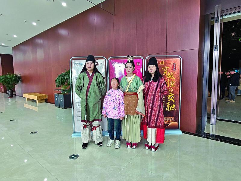 呼倫貝爾歷史博物館工作人員衣著北魏時(shí)期服飾與現(xiàn)場(chǎng)市民拍照互動(dòng)