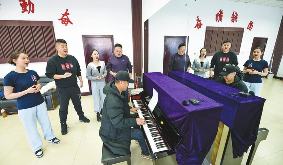 “偉大的中國(guó)共產(chǎn)黨,乘風(fēng)破浪,揚(yáng)帆遠(yuǎn)航,領(lǐng)航中國(guó)在新時(shí)代的征程上……”,從盟烏蘭牧騎排練廳傳出恢弘悠揚(yáng)的歌聲,這首《領(lǐng)航》是烏蘭牧騎近期排練的重點(diǎn)歌曲。