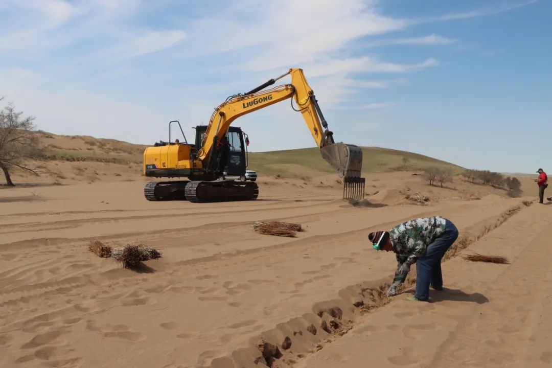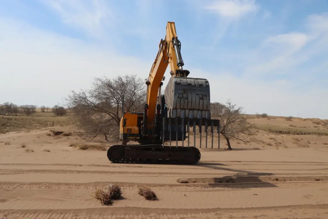 據(jù)錫林浩特市二蛋牧民養(yǎng)殖專業(yè)合作社負(fù)責(zé)人介紹,在傳統(tǒng)的沙漠治理作業(yè)中,工人需要手動栽植黃柳等固沙植物。然而,人工種植不僅效率低,勞動強度也大。為突破這一困境,合作社成員經(jīng)過多次試驗,最終決定對挖掘機進(jìn)行創(chuàng)新改造,加裝叉具,這一巧妙的設(shè)計不僅實現(xiàn)了對黃柳種植深度和間距的精準(zhǔn)把控,還能有效避免土壤翻動,最大程度地保持了土壤水分,切實保護(hù)了沙地的生態(tài)環(huán)境?! ?/p>