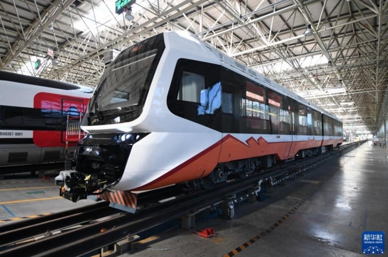 我國首列出口新能源輕軌車輛在河北唐山下線。