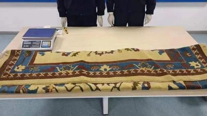 深圳郵局海關(guān)關(guān)員在對(duì)過境貨物開展監(jiān)管時(shí)發(fā)現(xiàn),1票包裹機(jī)檢圖像可疑,隨即對(duì)其開箱查驗(yàn)。查驗(yàn)發(fā)現(xiàn),該票包裹內(nèi)有一塊做工精致的地毯,編織到地毯內(nèi)的透明細(xì)塑料管中藏匿有細(xì)粉末一批,毛重11555.8克。經(jīng)現(xiàn)場(chǎng)試劑檢測(cè),判斷為冰毒。目前,海關(guān)緝私部門已介入調(diào)查處理。