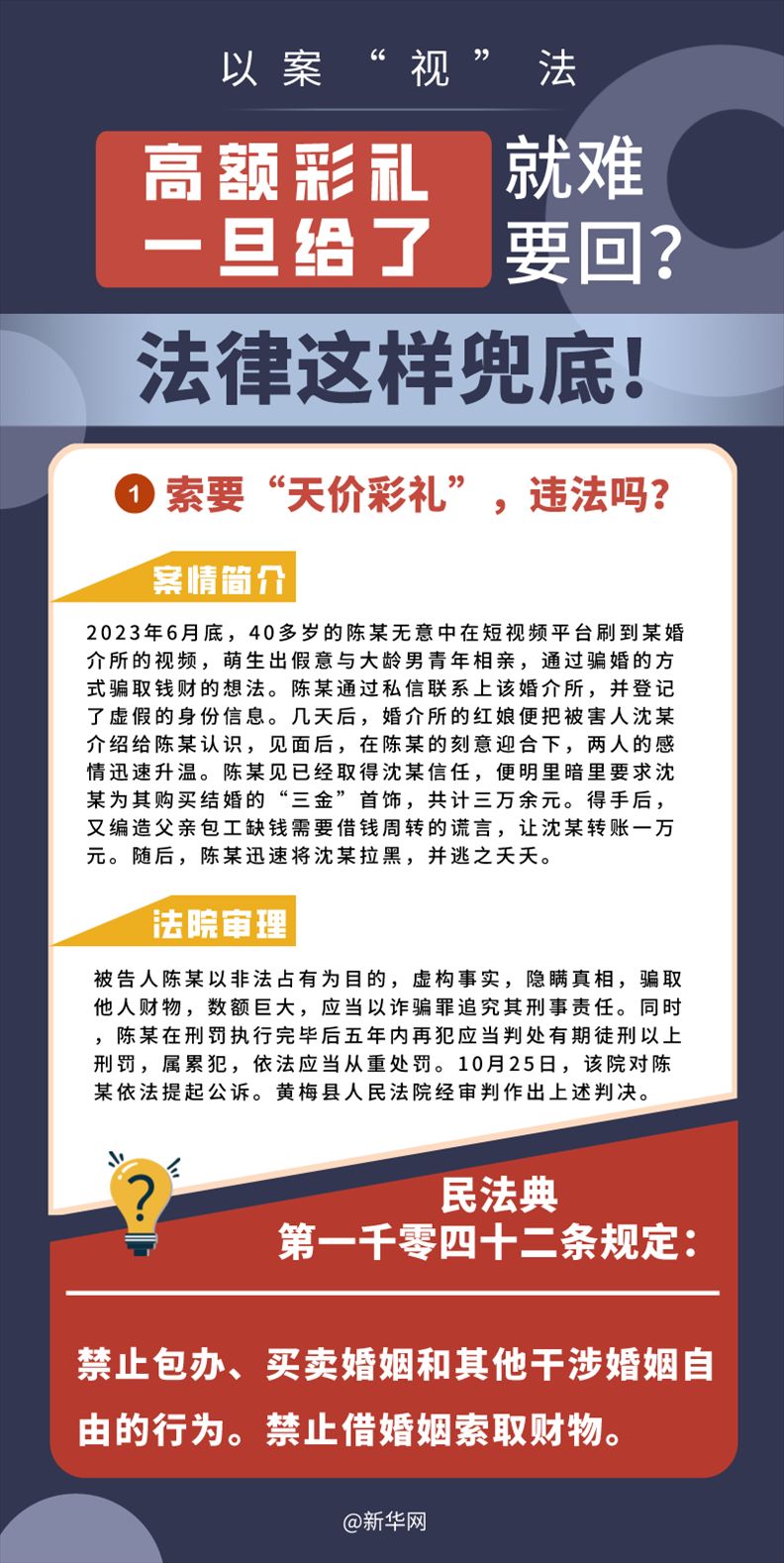 “五一”長假期間,各地迎來了婚禮高峰期,“彩禮”話題,尤其農(nóng)村高額彩禮現(xiàn)象備受關注。破解高價彩禮,在解決爭議的層面,司法盡了最大努力兜底。本期《以案“視”法》針對涉“高額彩禮”糾紛,帶大家學習相關法律知識。