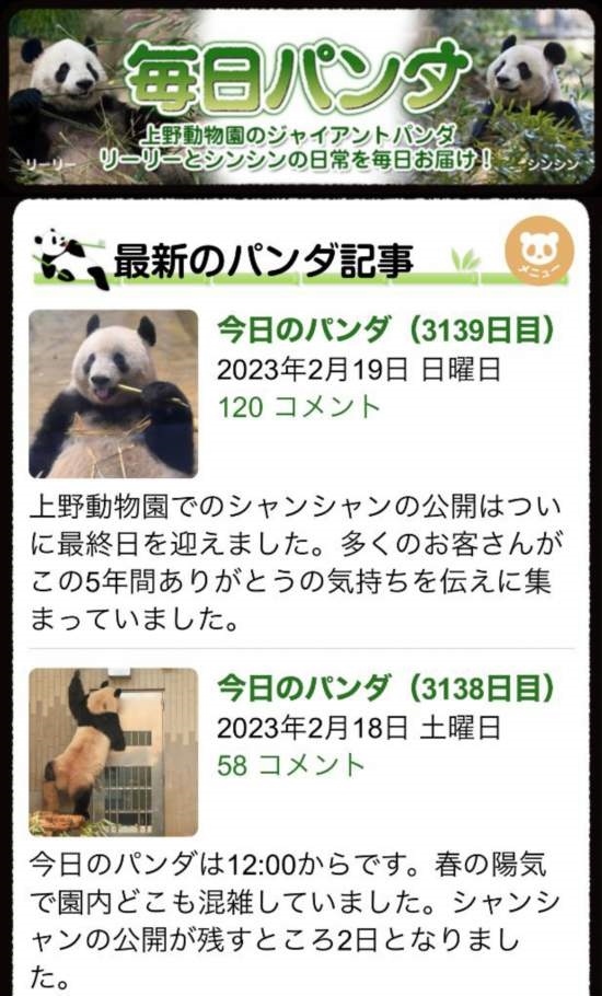 日本熊貓迷高氏貴博創(chuàng)建的“每日熊貓”博客。網(wǎng)絡(luò)截圖