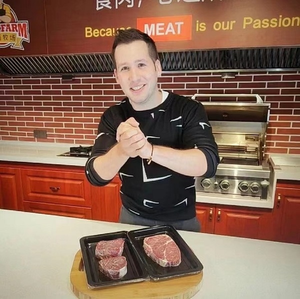 人民網(wǎng)北京3月24日電(符園園、古娜)“大家好,我是小高。一到冬天,我最愛吃的就是香噴噴熱乎乎的火鍋。所以我給大家?guī)砹宋覀兙臏?zhǔn)備的火鍋套餐。”直播間的高博睿,說著一口流利的中文,熟練地向大家介紹自己的牛肉產(chǎn)品。