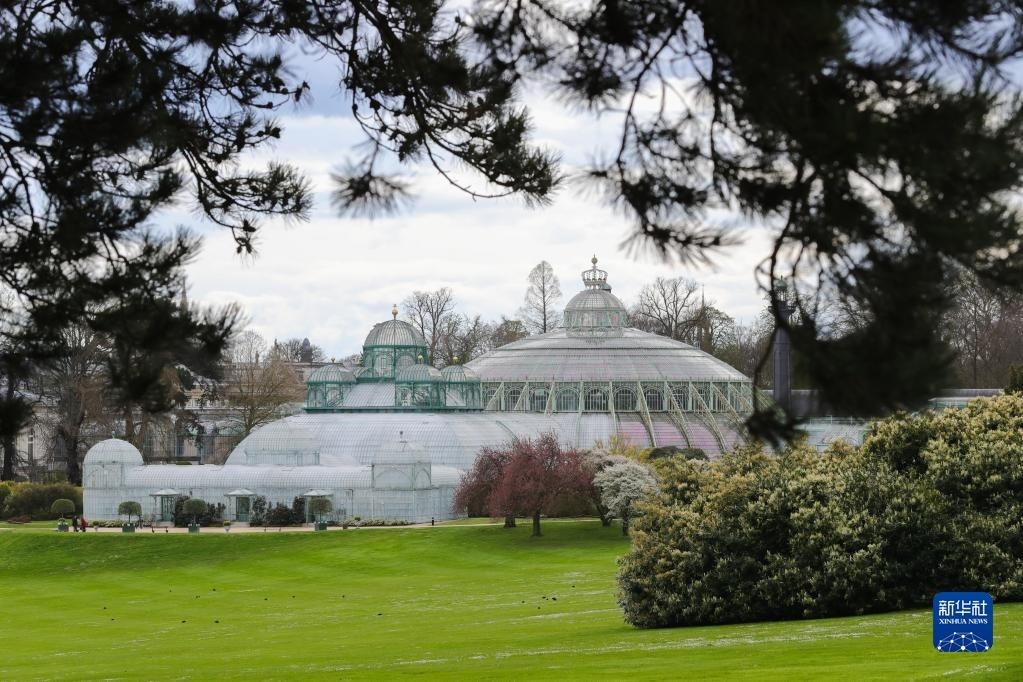 4月14日,人們在比利時(shí)布魯塞爾參觀拉肯宮王家溫室。
