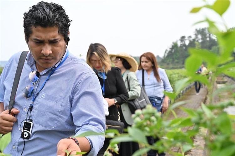 在南川區(qū)大觀鎮(zhèn)藍莓產業(yè)示范基地,代表團成員觀摩了先進的全基質種植技術。對于這片種植面積2000余畝、帶動當?shù)?000余名農民就近就業(yè)的項目,一名代表團成員有感而發(fā):“洪都拉斯也是一個農產品生產大國,期待未來兩國能夠開展技術培訓、技術援助方面的合作,將中國的種植經驗、智能的種植系統(tǒng)傳播到洪都拉斯,為當?shù)孛癖妿ブ赂坏臋C遇,促進當?shù)氐纳a和發(fā)展?!?/p>