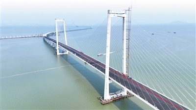 4月12日,在粵港澳大灣區(qū)核心區(qū)域,串聯(lián)珠江東西兩岸的世界級(jí)跨海工程——深中通道正在加緊施工。周志旺攝(影像中國(guó))