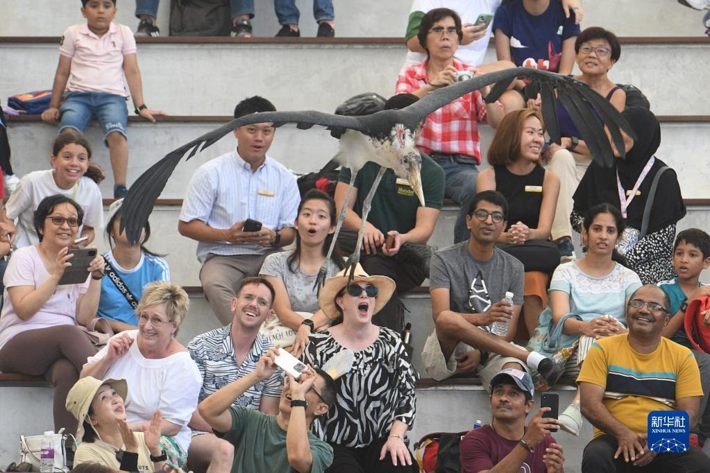 5月8日,觀眾在新加坡飛禽公園開放當(dāng)天來到園內(nèi)欣賞飛禽表演。