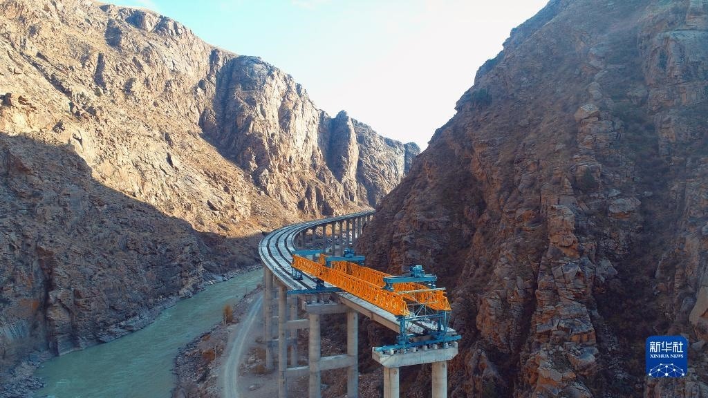這是2021年11月10日拍攝的吉爾吉斯斯坦新北南公路二期工程的一座大橋。新華社發(fā)(羅曼 攝)