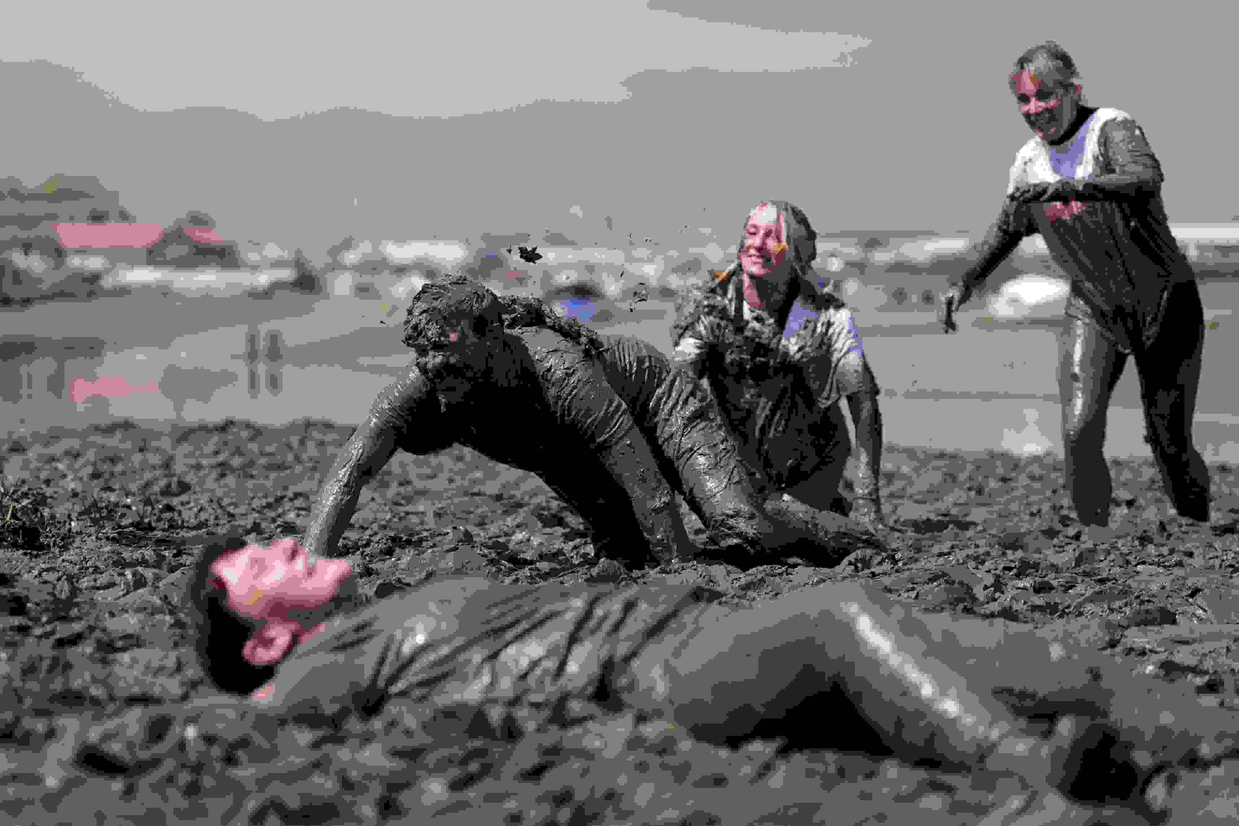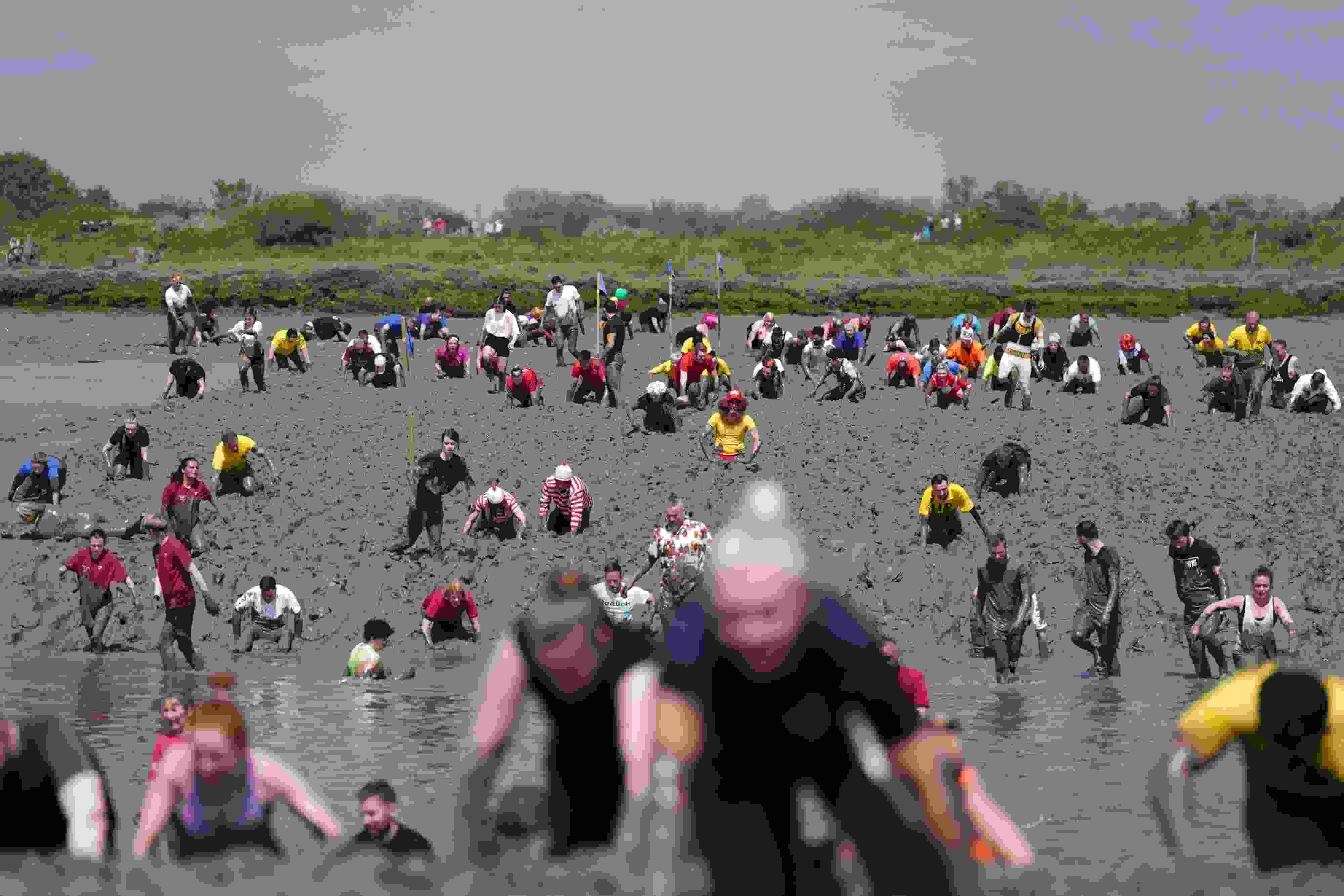當?shù)貢r間2023年5月14日,英國莫爾登,參賽者參加一年一度的滾泥巴大賽。該大賽是一項慈善活動,參賽者要在埃塞克斯郡的黑水河河床上賽跑。 視覺中國