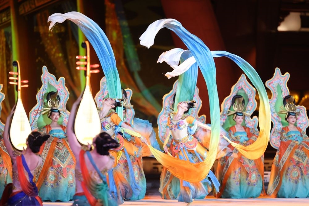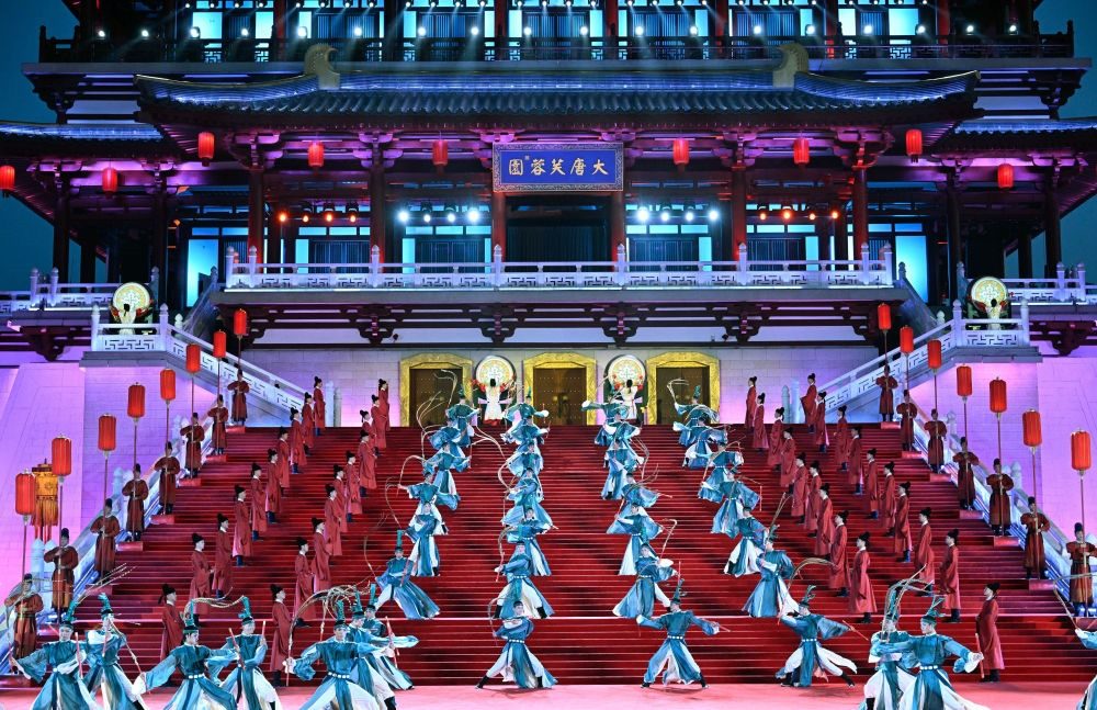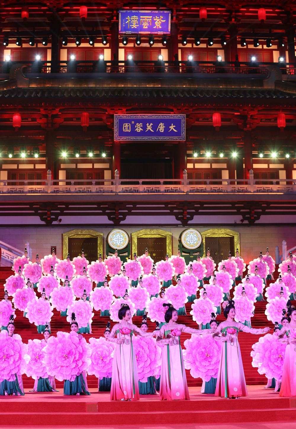 習(xí)近平夫婦為貴賓舉行唐朝傳統(tǒng)迎賓儀式。紫云樓前,禮樂和鳴,明快有力的古代佾舞、絢麗婀娜的芙蓉花舞,表達(dá)了古都西安人民的熱情好客,體現(xiàn)了中華文化兼容并蓄的精神風(fēng)貌。