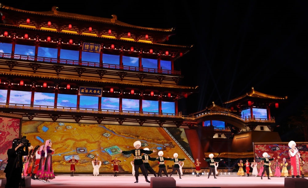 宴會(huì)后,習(xí)近平夫婦同貴賓們共同觀看中國同中亞國家人民文化藝術(shù)年暨中國-中亞青年藝術(shù)節(jié)開幕式演出。