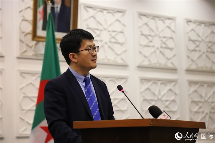 中國駐阿爾及利亞大使李健致辭。人民網(wǎng)記者 王傳寶攝