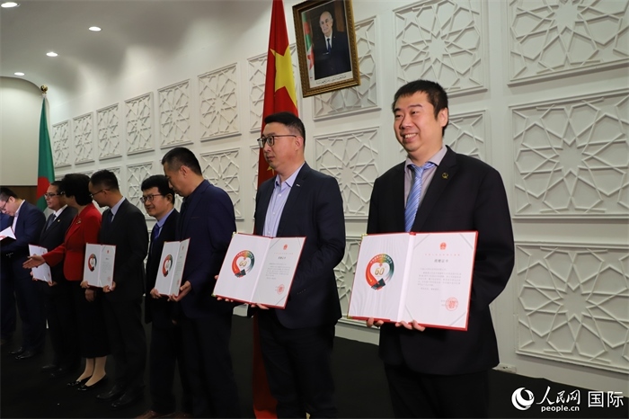 招待會上,與會嘉賓還向第27批醫(yī)療隊各個分隊頒發(fā)了獎?wù)?,并為近來參與向阿爾及利亞各地醫(yī)療機構(gòu)捐贈物資的中資企業(yè)頒發(fā)了證書。