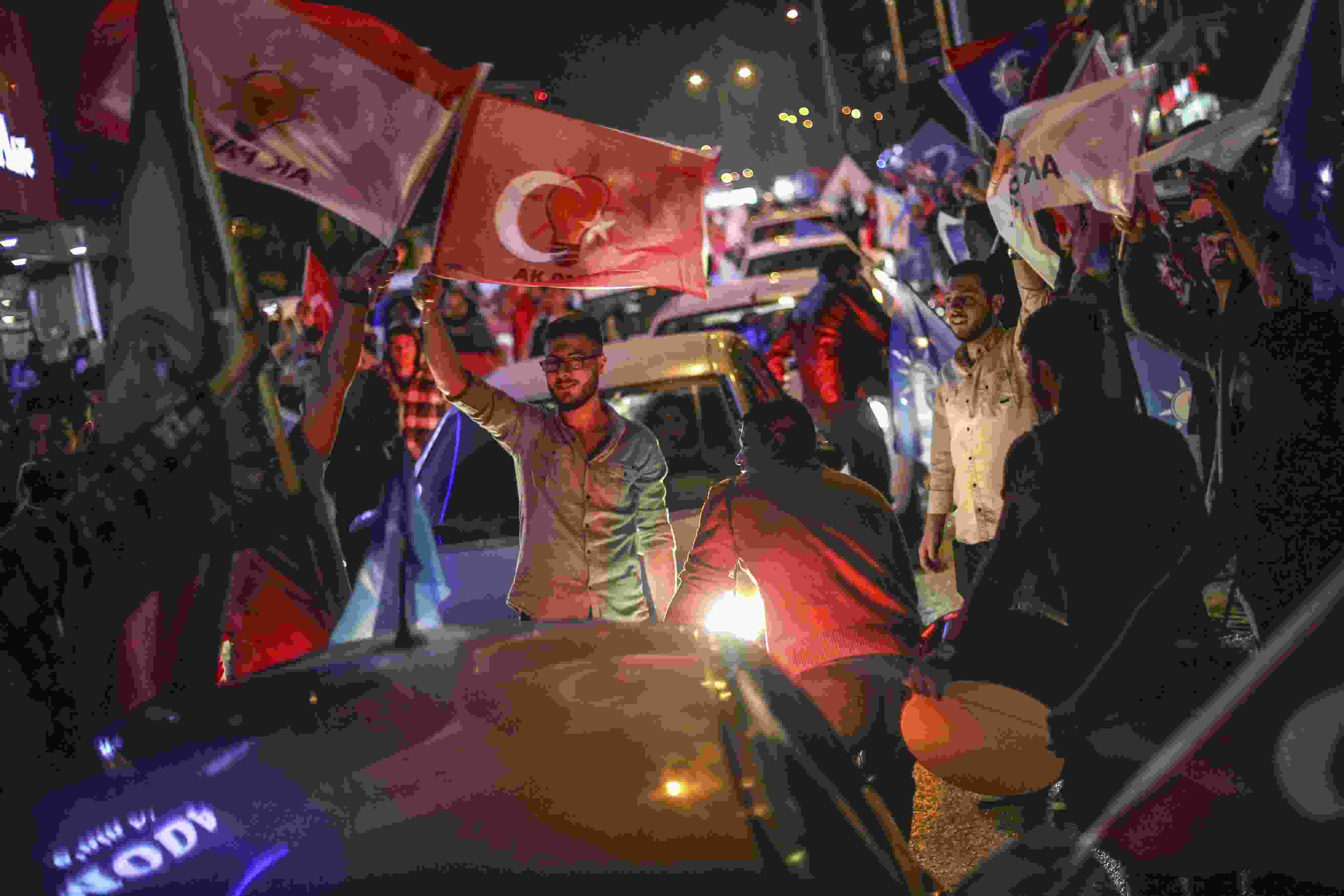 埃爾多安再次當(dāng)選土耳其總統(tǒng) 支持者街頭慶祝