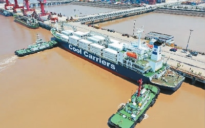 去年以來(lái),浙江省玉環(huán)市持續(xù)加強(qiáng)對(duì)港口企業(yè)的引導(dǎo)力度,拓展大麥嶼港與東南亞國(guó)家、RCEP國(guó)家的合作。圖為一艘滿載6245噸新季獼猴桃的新西蘭貨輪停泊在大麥嶼港集裝箱碼頭,該航線是大麥嶼港于去年成功開(kāi)通的RCEP國(guó)家水果進(jìn)口航線,實(shí)現(xiàn)了入境水果業(yè)務(wù)零的突破。段俊利攝(人民視覺(jué))