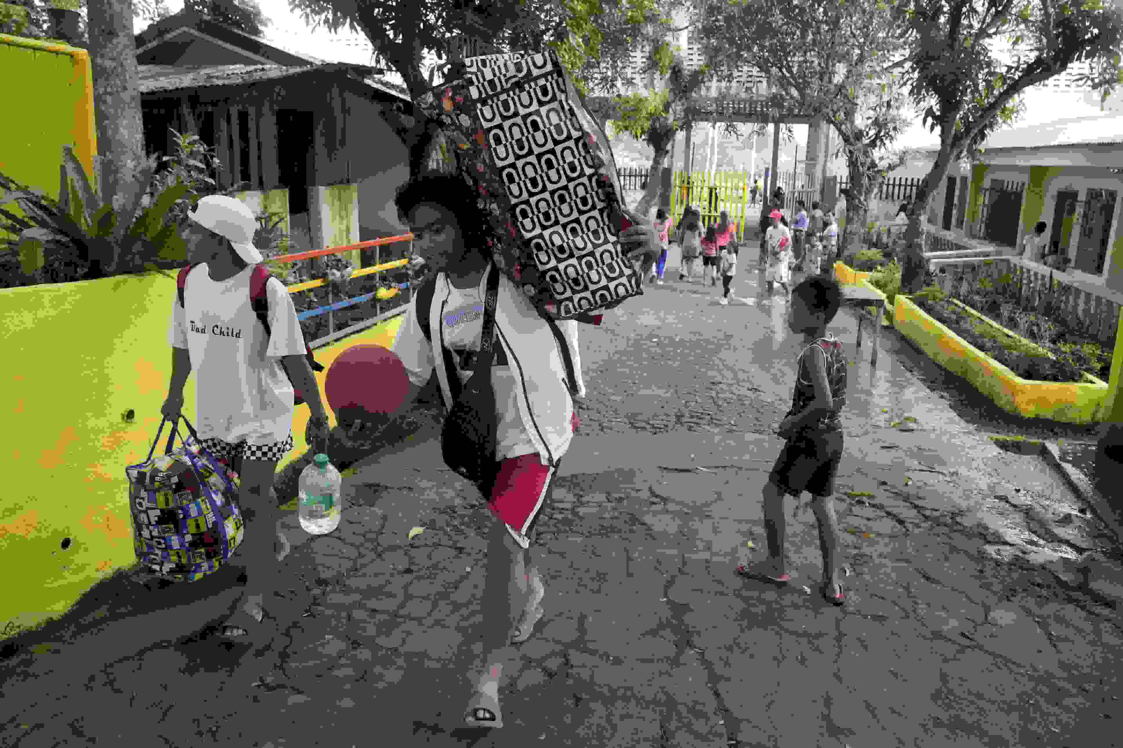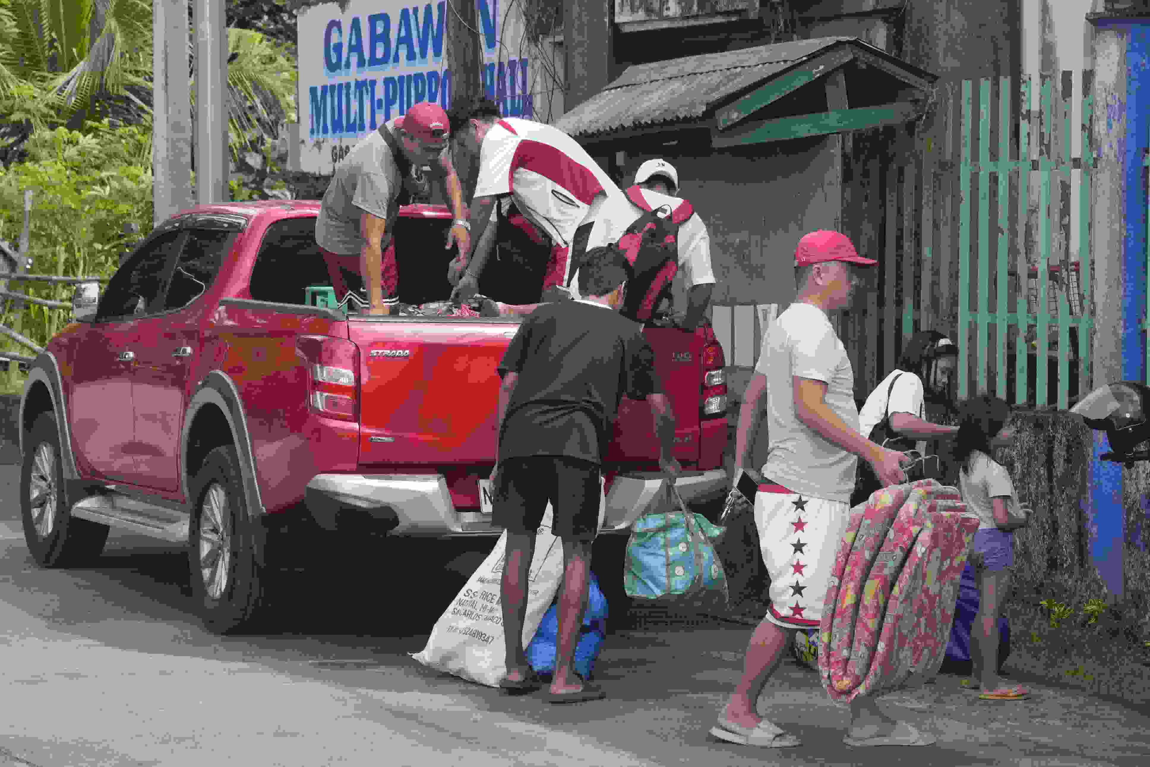 當(dāng)?shù)貢r間2023年6月10日,菲律賓阿爾拜省,撤離人員帶著他們的物品抵達(dá)臨時安置點。 視覺中國