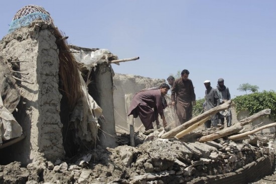 5月6日,人們在阿富汗楠格哈爾省清理遭強(qiáng)降雨和洪水損毀的房屋廢墟。新華社發(fā)(艾馬爾·查希爾攝)