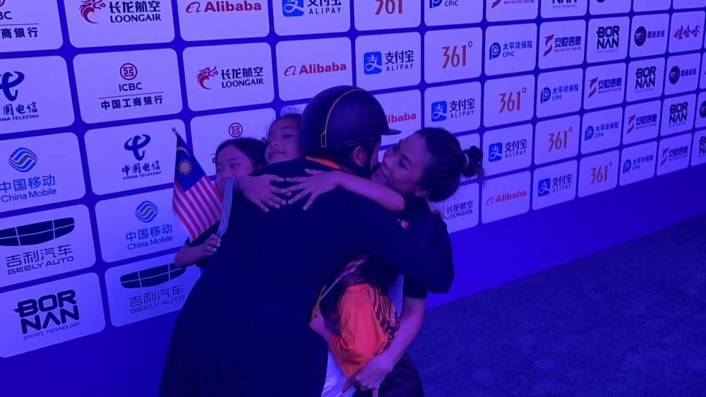 “今天對(duì)我來(lái)說(shuō)太重要了,我的妻子、孩子在場(chǎng)邊目睹了這一刻,這是一場(chǎng)永遠(yuǎn)值得回憶的比賽。我等這枚金牌已經(jīng)25年了,以前我只獲得過(guò)銅牌和銀牌?!卑舶涂瞬粌H實(shí)現(xiàn)了個(gè)人突破,也贏得了馬來(lái)西亞馬術(shù)項(xiàng)目的第一塊亞運(yùn)金牌。