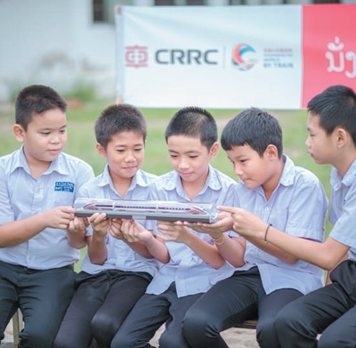 自2021年12月3日通車以來,中老鐵路為便利兩國民眾出行、促進(jìn)貿(mào)易往來發(fā)揮了積極作用。圖為在由中國中車集團(tuán)有限公司舉辦的“坐著火車看世界”老撾站活動中,萬象宗佩中學(xué)學(xué)生觀賞中老鐵路動車模型。本報記者 孫廣勇攝