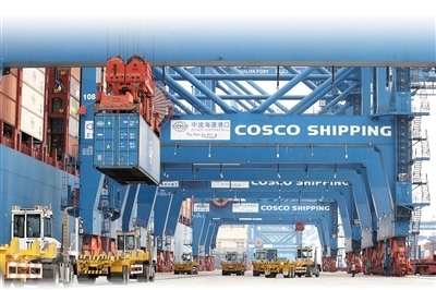 中遠(yuǎn)海運港口阿聯(lián)酋阿布扎比碼頭采用岸橋預(yù)留自動化和堆場自動化作業(yè)模式,可作業(yè)超2萬標(biāo)準(zhǔn)箱大型船舶,年設(shè)計能力250萬標(biāo)準(zhǔn)箱。本報中東中心分社 納達(dá)爾·達(dá)烏德攝