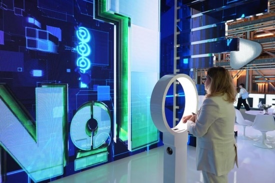 7月27日,在俄羅斯圣彼得堡,一名觀眾在俄非峰會(huì)會(huì)場(chǎng)體驗(yàn)用手勢(shì)操控顯示屏。新華社記者安曉萌攝