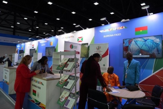 這是7月27日在俄羅斯圣彼得堡拍攝的俄非峰會(huì)非洲國家展臺(tái)。新華社記者安曉萌攝