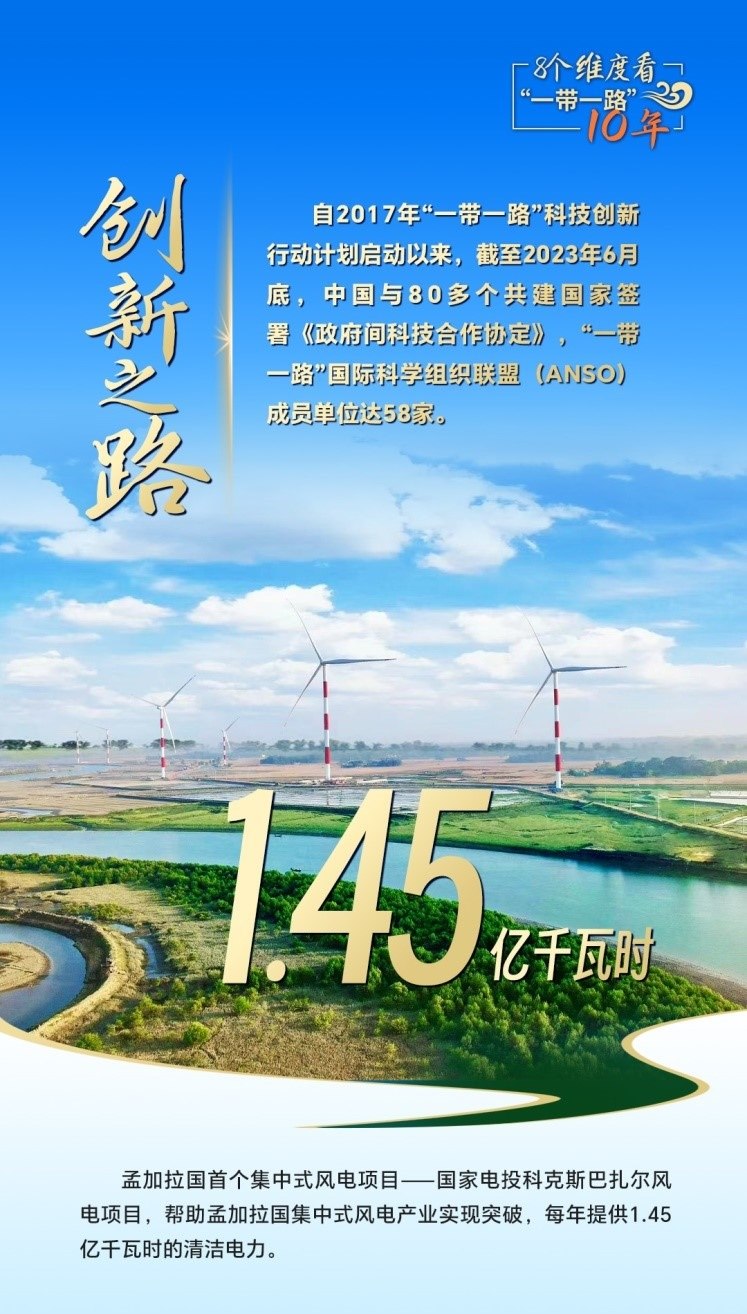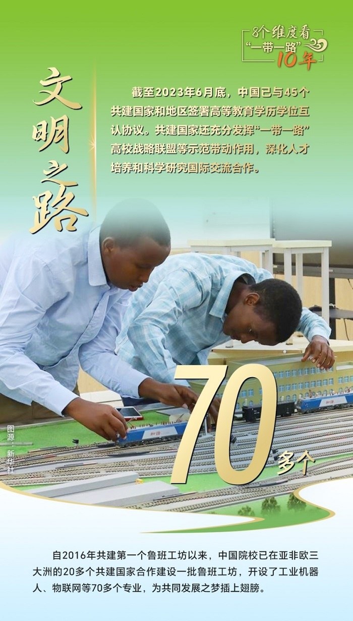 10年來,創(chuàng)新始終是一個關(guān)鍵詞,中國與共建國家加強(qiáng)科技創(chuàng)新合作,加速集聚創(chuàng)新資源,為共建“一帶一路”注入強(qiáng)勁動力。截至2023年6月底,中國與80多個共建國家簽署《政府間科技合作協(xié)定》,“一帶一路”國際科學(xué)組織聯(lián)盟(ANSO)成員單位達(dá)58家;2013年以來,中國支持逾萬名共建國家青年科學(xué)家來華開展短期科研工作和交流,累計培訓(xùn)共建國家技術(shù)和管理人員1.6萬余人次;累計幫助50多個非洲國家建成20多個農(nóng)業(yè)技術(shù)示范中心,在農(nóng)業(yè)、新能源、衛(wèi)生健康等領(lǐng)域啟動建設(shè)50余家“一帶一路”聯(lián)合實(shí)驗(yàn)室。