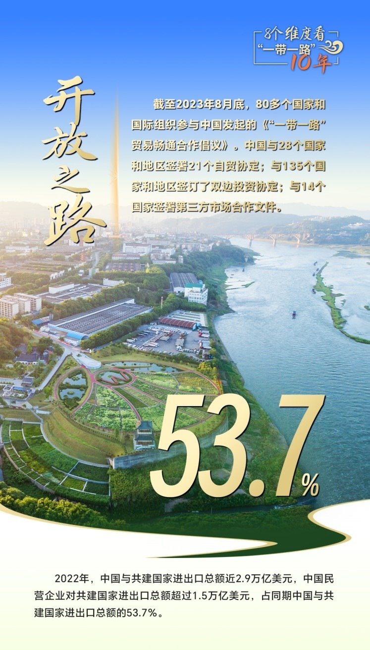 2023年是共建“一帶一路”倡議提出十周年,也是全面貫徹落實(shí)黨的二十大精神的開局之年。黨的二十大報告提出:“推動共建‘一帶一路’高質(zhì)量發(fā)展?!睆男缕瘘c(diǎn)再出發(fā),高質(zhì)量共建“一帶一路”,在和平之路、繁榮之路、開放之路、創(chuàng)新之路、文明之路、健康之路、綠色之路和數(shù)字之路上繼續(xù)扎實(shí)推進(jìn),攜手世界合作共贏、共同發(fā)展,擘畫攜手共建人類命運(yùn)共同體新藍(lán)圖。