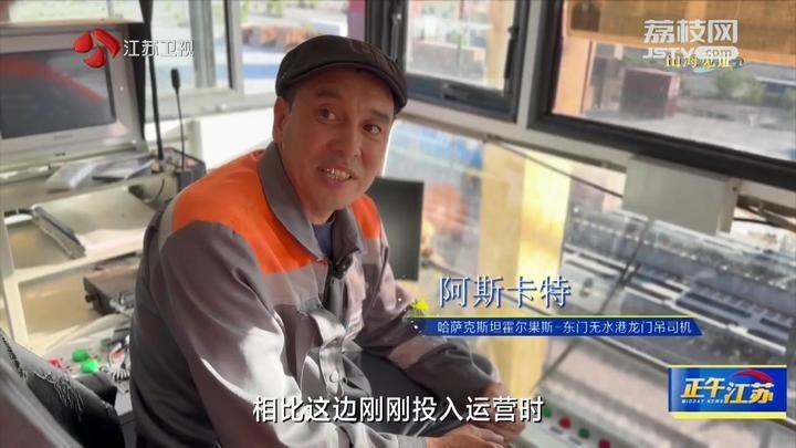 哈薩克斯坦霍爾果斯-東門無水港龍門吊司機(jī)阿斯卡特說:“相比這邊剛剛投入運營時,運輸量有非常明顯的增加。原來每天1-2列,現(xiàn)在7-8列通過。我收入有增多了,來這之前是3個小孩,現(xiàn)在是5個小孩?!?/p>