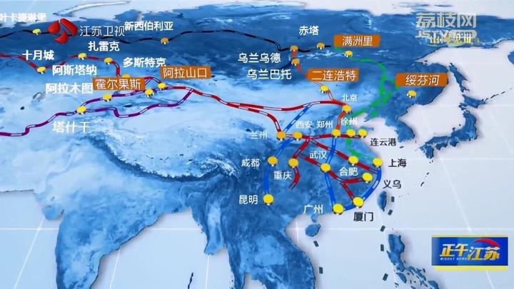 1992年,江蘇連云港開通最早發(fā)往中亞的班列;2013年,蘇州、鄭州、重慶、成都首批開通中亞班列;2016年,統(tǒng)一品牌:中歐班列。截至2023年9月底,中歐班列累計開行超7.8萬列,聯(lián)通中國境內(nèi)112個城市,通達(dá)歐洲25個國家的217個城市。