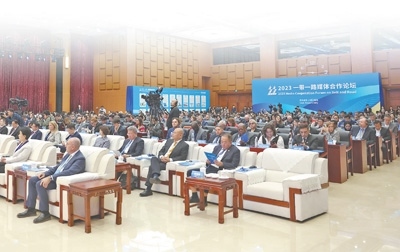 2023“一帶一路”媒體合作論壇開幕式現(xiàn)場。本報記者 蔣雨師攝