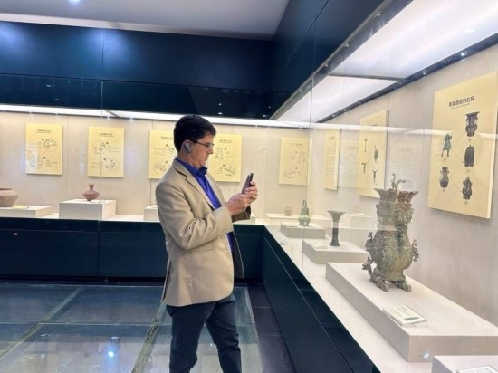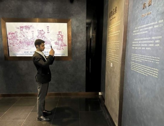 10月23日,2023“一帶一路”媒體合作論壇聯(lián)合采訪團(tuán)團(tuán)員在中國(guó)酒文化城認(rèn)真觀看展覽。本報(bào)記者 劉書文攝