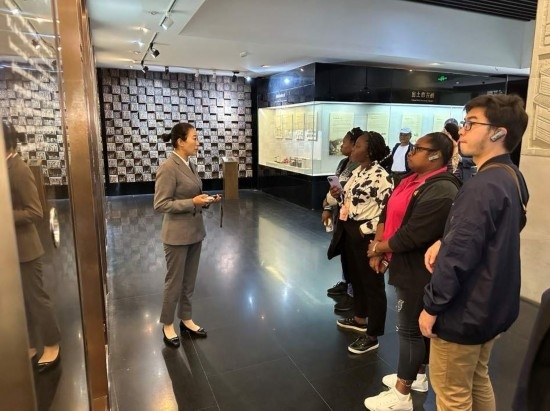 10月23日,在中國(guó)酒文化城,2023“一帶一路”媒體合作論壇聯(lián)合采訪團(tuán)團(tuán)員認(rèn)真聆聽講解。本報(bào)記者 劉書文攝
