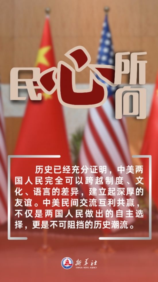 中美都應(yīng)該本著對兩國人民負(fù)責(zé)任的態(tài)度,從兩國人民的福祉出發(fā),處理好、管控好、發(fā)展好兩國關(guān)系,為兩國人民繼承和弘揚(yáng)珍貴友誼遺產(chǎn)創(chuàng)造有利氛圍和條件,筑牢兩國友誼與合作的民意基礎(chǔ)。近期中美關(guān)系“大氣候”回暖,越來越多的中美各界人士為兩國擴(kuò)大交往合作鼓與呼,為兩國人民相知相親四處奔走,傳遞出中美民間友好的積極信息。