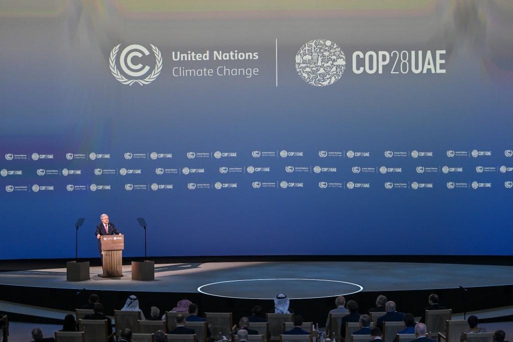 2023年12月1日,聯(lián)合國秘書長古特雷斯在阿聯(lián)酋迪拜世界氣候行動峰會開幕現(xiàn)場致辭。新華社發(fā)(聯(lián)合國氣候變化迪拜大會供圖)