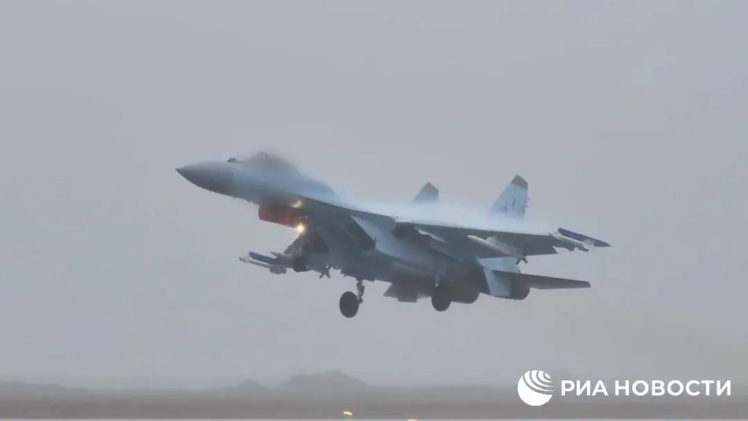 4架蘇-35戰(zhàn)斗機(jī)全程伴飛