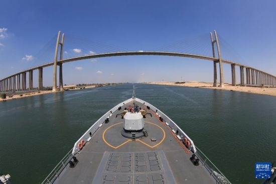 中國海軍第26批護(hù)航編隊(duì)航行通過蘇伊士運(yùn)河(2017年9月2日攝)。新華社發(fā)(林健攝)