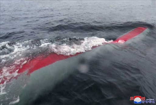 去年3月,朝鮮進(jìn)行了一系列軍事訓(xùn)練活動(dòng),包括新型水下攻擊武器系統(tǒng)試驗(yàn),其中,“海嘯”的核無人潛水攻擊艇首次亮相。試驗(yàn)在朝鮮咸鏡南道利原郡海岸進(jìn)行,在80米至150米深度潛航了約59小時(shí),最后到達(dá)假想敵人港口的洪原灣水域目標(biāo)點(diǎn)爆炸。一個(gè)月后朝鮮公開了“海嘯-2”型核無人潛水攻擊艇,朝方稱,該艇進(jìn)行了71小時(shí)、1000千米的潛航試驗(yàn),驗(yàn)證了潛水式戰(zhàn)略武器系統(tǒng)的可靠性和致命打擊能力。