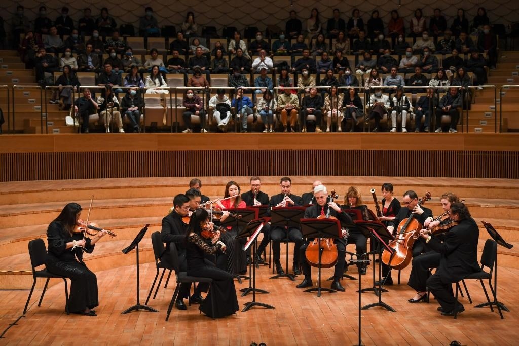 ?這是2023年11月16日拍攝的音樂會(huì)現(xiàn)場。當(dāng)日,“費(fèi)城之約”——費(fèi)城交響樂團(tuán)與蘇州交響樂團(tuán)室內(nèi)樂音樂會(huì)在江蘇蘇州舉行。新華社記者 李博 攝