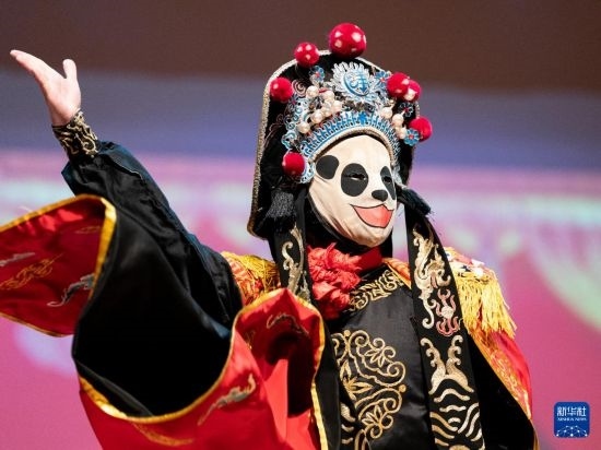 2月2日晚,成都市川劇研究院在美國得克薩斯州休斯敦舉辦專場(chǎng)演出。這是演員表演《川劇變臉》。新華社發(fā) (陳晨攝)
