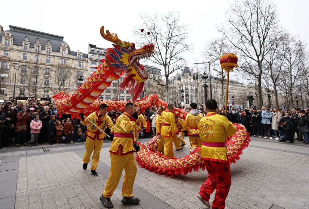 在美國紐約,中國龍形文物巨幅海報(bào)亮相時(shí)報(bào)廣場(chǎng),向全球人民獻(xiàn)上新春祝福。在新西蘭,總理拉克森在奧克蘭參加“新春花市同樂日”活動(dòng),與當(dāng)?shù)厝A人共迎新春。在毛里求斯首都路易港,該國副總理胡斯努與眾人敲響鑼鼓,共同啟動(dòng)“歡樂春節(jié)”花車巡游。在法國巴黎香榭麗舍大街,長長的舞龍?jiān)邶堉橐龑?dǎo)下上下翻飛,博得陣陣喝彩。游客讓-巴蒂斯特說,世界各地都在慶祝春節(jié),因?yàn)榇汗?jié)帶來的快樂能“感染所有人”。
